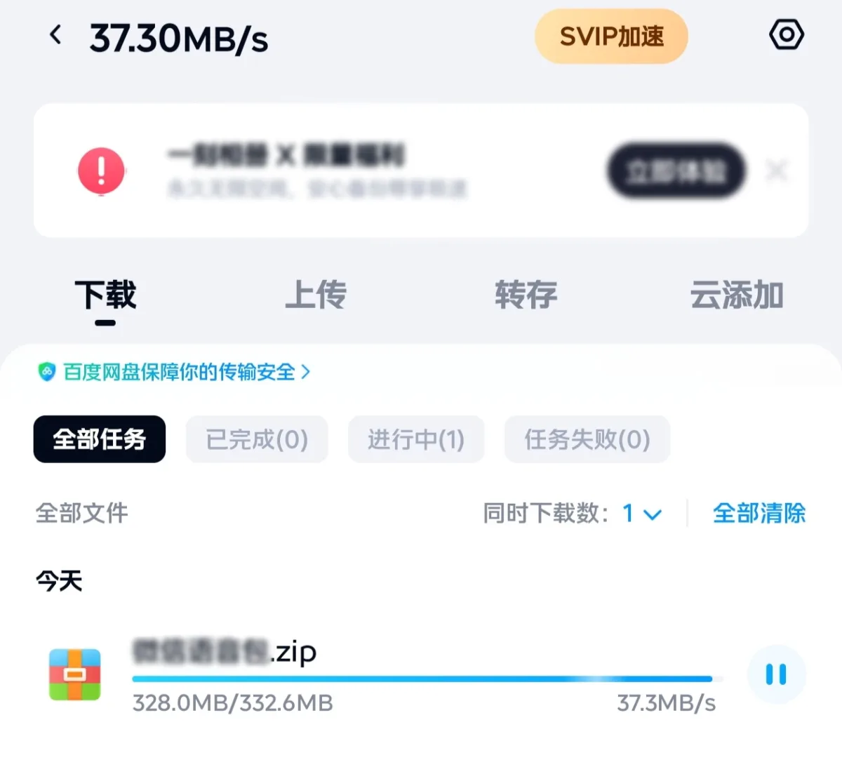 平时突然临时下载一个大文件,比较多人在百度网盘做分享,不开会员的情况下,下载多慢我想大家都知道,开会员呢又用不上天天下载那样,纯属感觉有点浪费。
